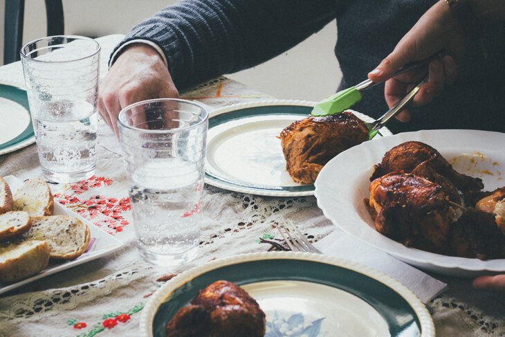 - Учитывать температуру пищи: сухие и горячие блюда комфортнее запивать водой.