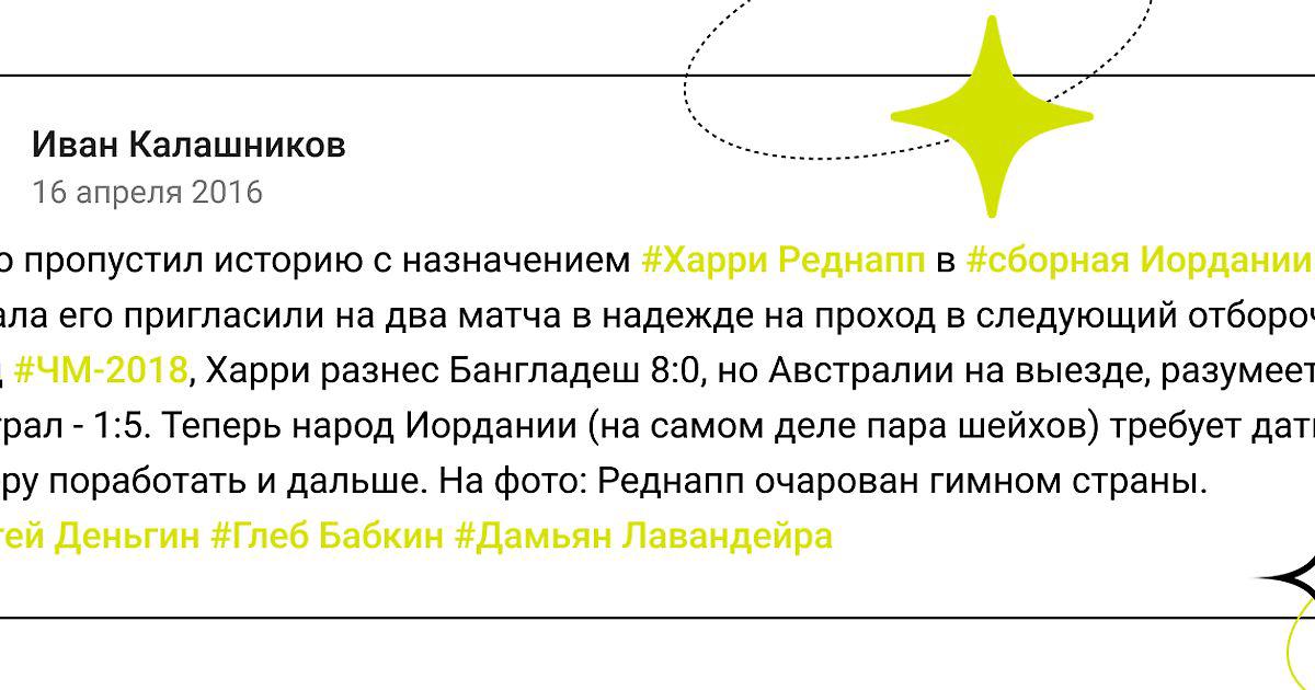 Со временем пользователи Sports.ru перестали использовать статусы как волчьи цитаты из ВК и превратили их в подобие твиттера. В статусы улетали свежие мысли и реакции на спортивные события, а также интересные факты, и читать ленту статусов друзей было примерно так же увлекательно, как сидеть с ними за одним столом. А самый мощный флэшмоб, захвативший статусы, был связан с использованием рандомных тегов, не связанных с темой высказывания.