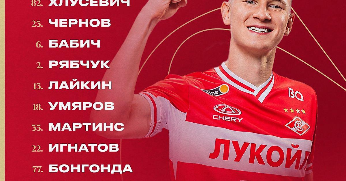 «Спартак»: Селихов (к), Хлусевич, Чернов, Бабич, Рябчук, Умяров, Мартинс, Лайкин, Соболев, Игнатов, Бонгонда.