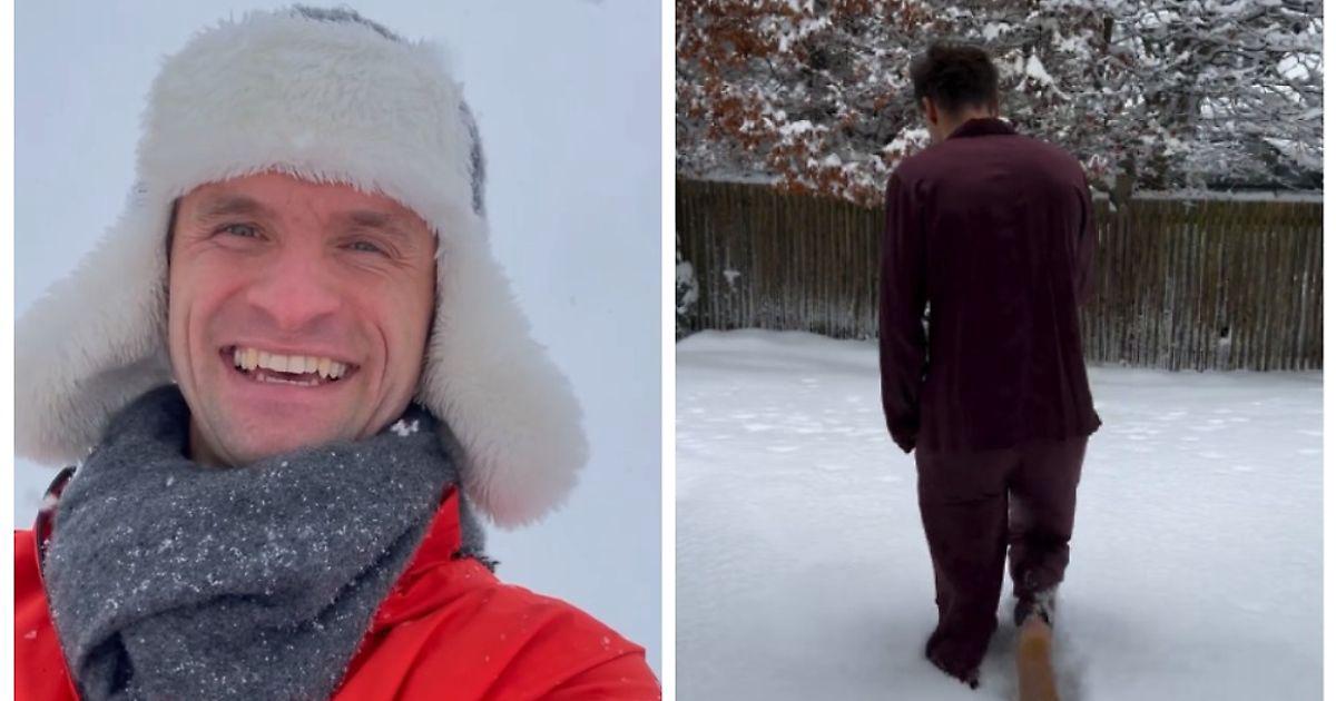 Матч «Баварии» и «Униона» отменили из-за снегопада. Мюллер и Горетцка забавно сразились с непогодой 😂