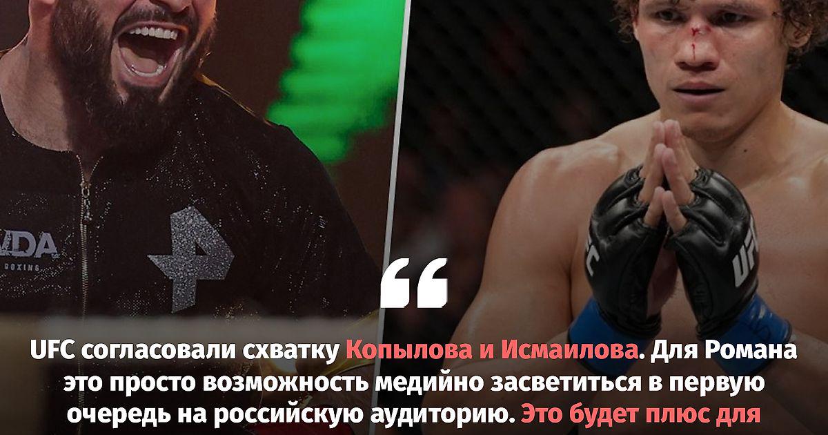 Александр Скаредин подтвердил «Матч!ТВ», что схватка Копылова и Исмаилова согласована UFC. Глава команды отметил, что эта встреча будет контрольным срезом для текущего состояния борьбы Романа.