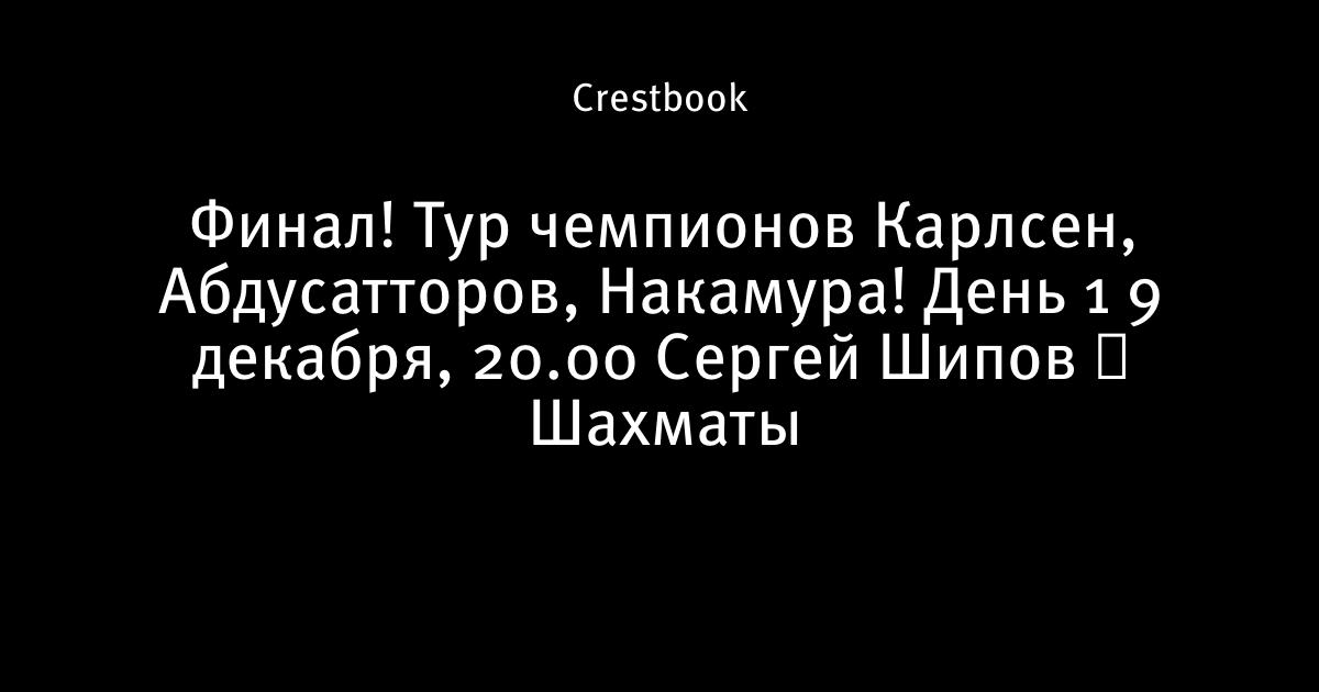 Финал! Тур чемпионов 🏆 Карлсен, Абдусатторов, Накамура! День 1 ⏰ 9 декабря, 20.00 🎤 Сергей Шипов ♕ Шахматы