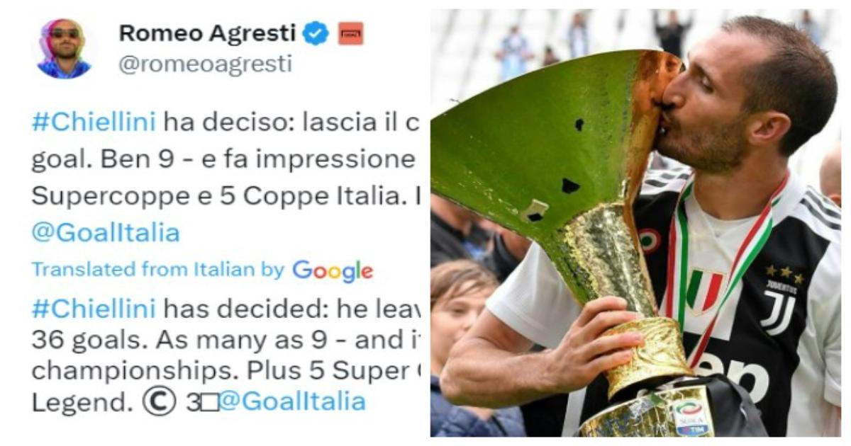 Итальянский инсайдер Ромео Агрести в социальной сети Х сообщил о решении Джорджо Кьеллини завершить карьеру в возрасте 39 лет.