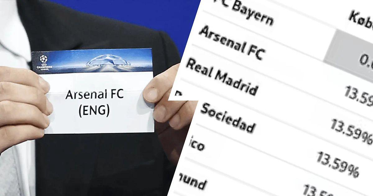 Меньше всего вариантов у «РБ Лейпциг» - пять. Немецкий клуб может сыграть только против «Арсенала», «Реала», «Сосьедада», «Атлетико» или «Барселоны». Легко подсчитать, что вероятность каждого из вариантов составляет 20%. Но на целых 80% это будет команда из Испании.