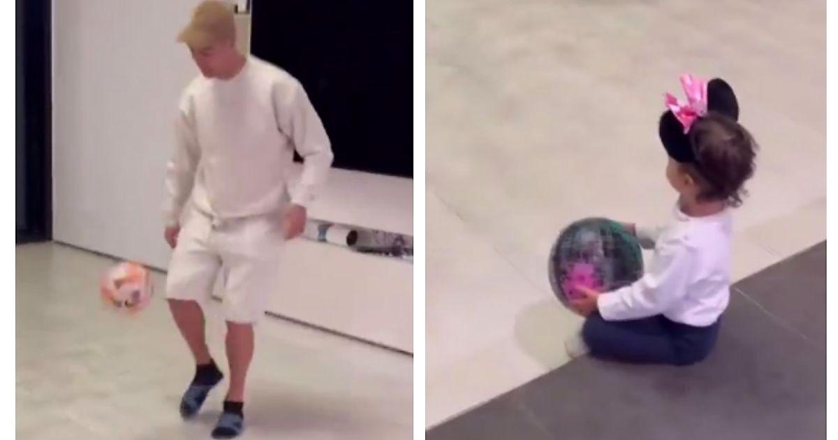 Милота дня❤️ Криштиану Роналду даже дома не забывает про футбол и играет в мяч с детьми - участвует даже дочурка🎀