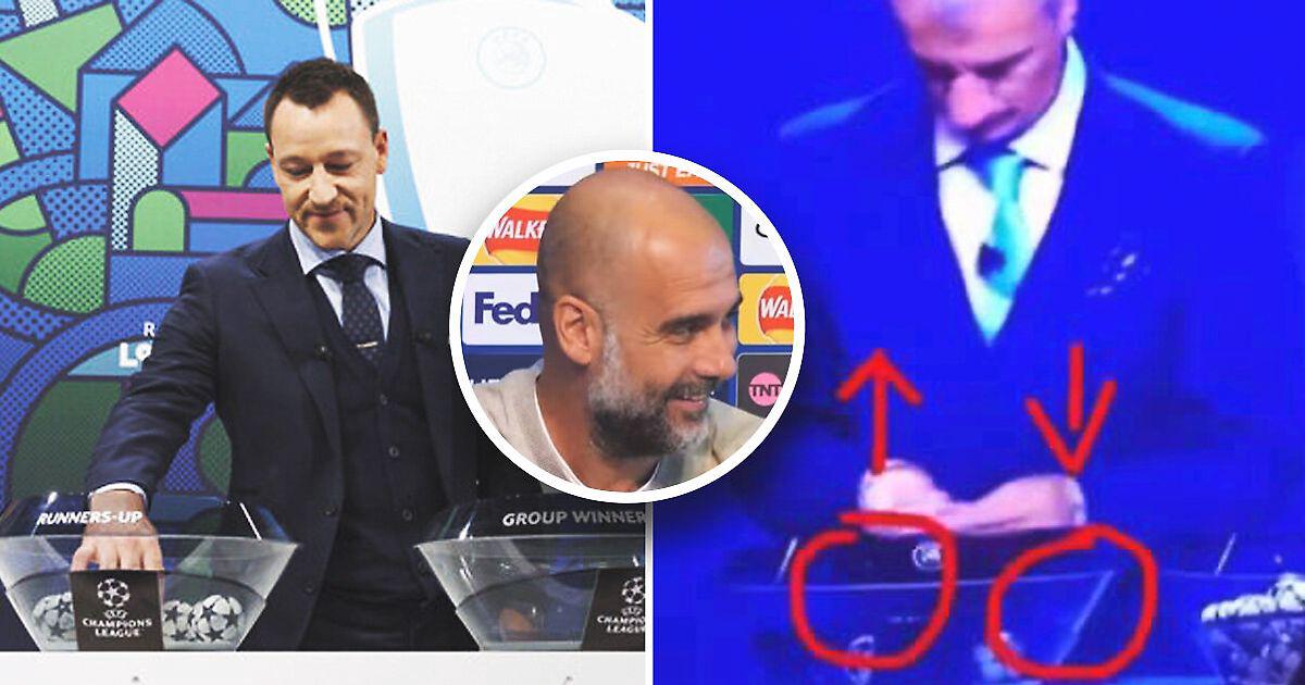 Жеребьевка Лиги чемпионов проходит максимально прозрачно: ее транслируют в прямом эфире, а из зала за процессом наблюдают представители клубов. Поэтому подтасовка возможна единственным способом – ведущие должны знать, какой именно шар вытащить в определенный момент. Жеребьевку проводят бывшие звезды футбола – например, в этом году пары плей-офф распределял Джон Терри.