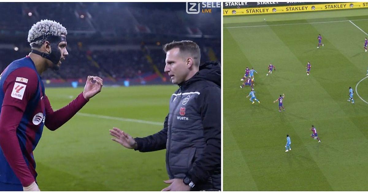 В дело вмешался ВАР. После проверки взятие ворот было засчитано. Положения «вне игры» не было из-за отставленной в сторону ноги все того же Араухо. Вот так арбитры прочертили линию офсайда.
