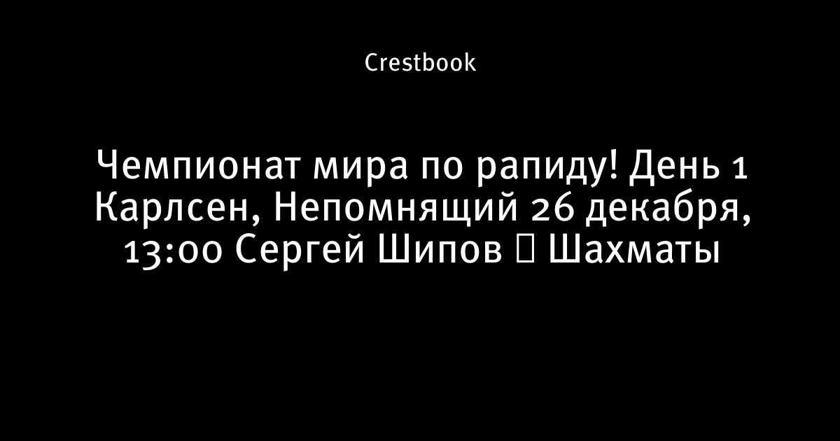 Чемпионат мира по рапиду! День 1 🏆 Карлсен, Непомнящий ⏰ 26 декабря, 13:00 🎤 Сергей Шипов ♕ Шахматы