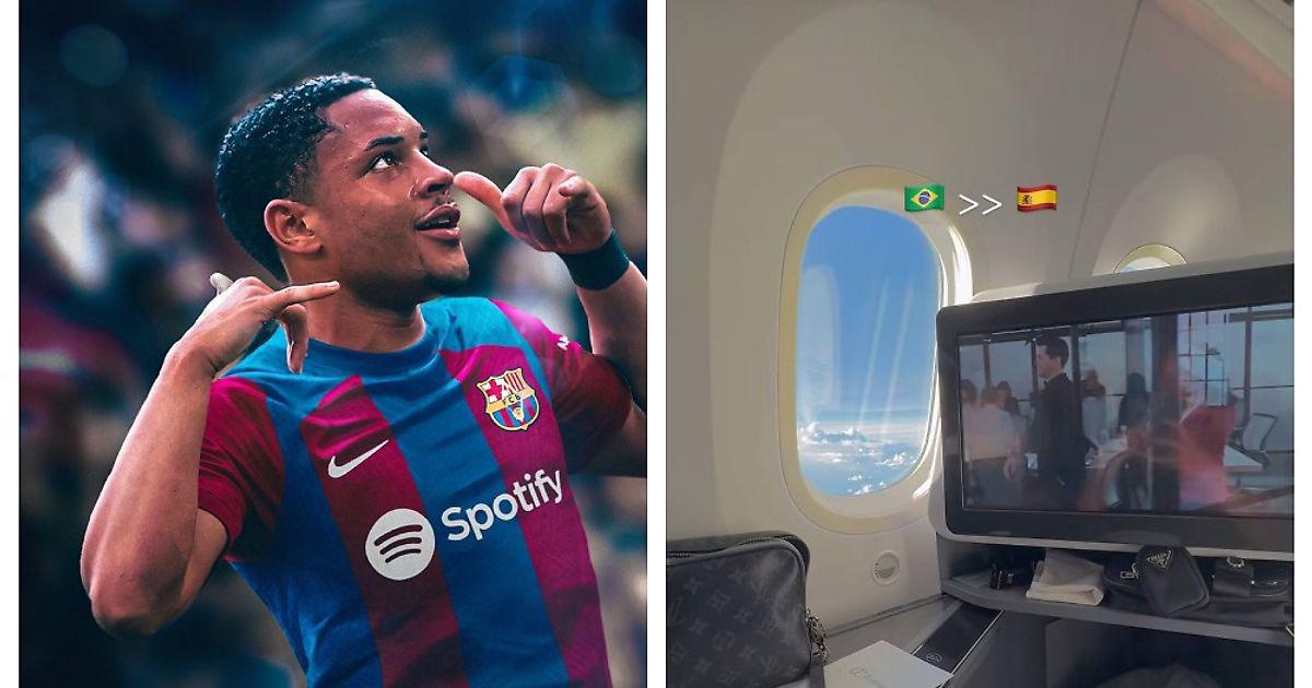 Роке 18 лет, он воспитанник бразильского «Крузейро», вместе с ним в столицу Каталонии летит его жена Дайана Линс Роке - именно у нее в сторис появилось видео из самолета, направляющегося из Бразилии в Испанию.