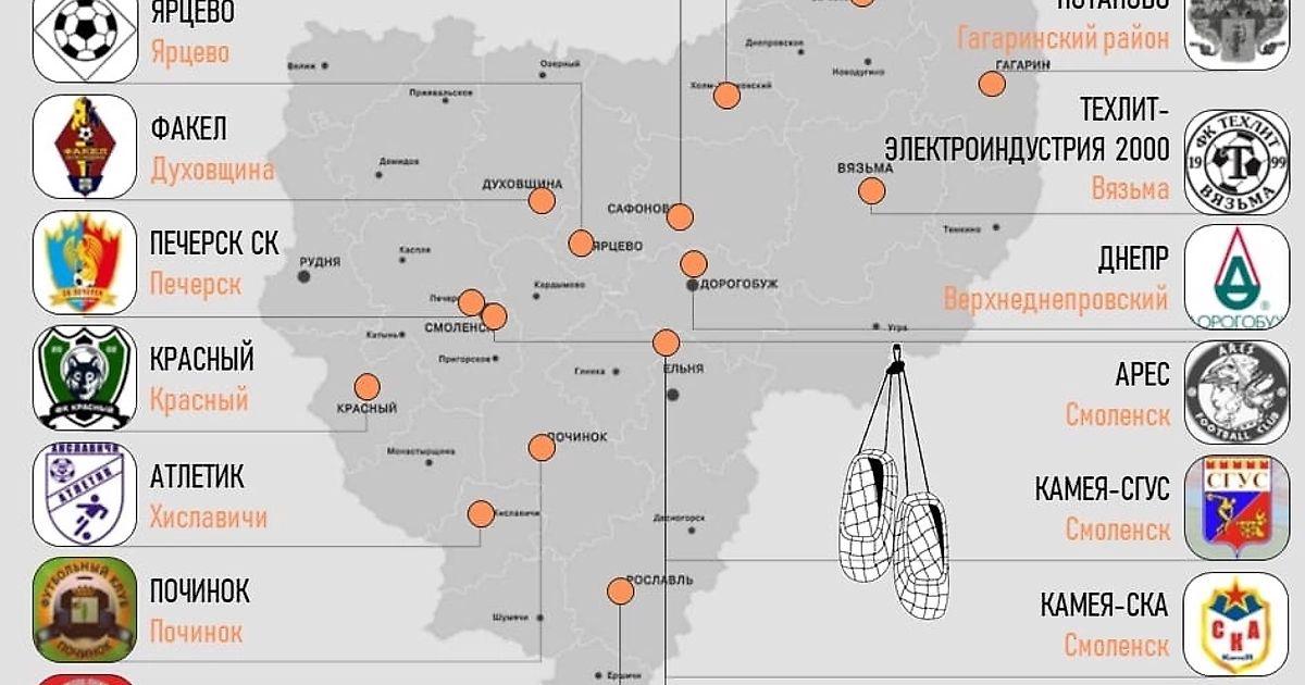ФК Вязьма, Автомобилист Десногорск, сафоновская ДЮСШ, Вектор из Ярцево и смоленские СМОЛАПО, ЖБИ-2 и Вихра.
