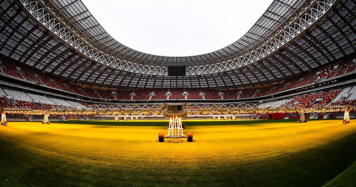 Сегодня поговорим про то, без чего футбольный стадион немыслим – тем более главный в стране. Про газон «Лужников». Лучше собеседника, чем главный агроном – Максим Радомский, нам тут не найти. Мы задали ему ровно 11 вопросов – самое футбольное число.