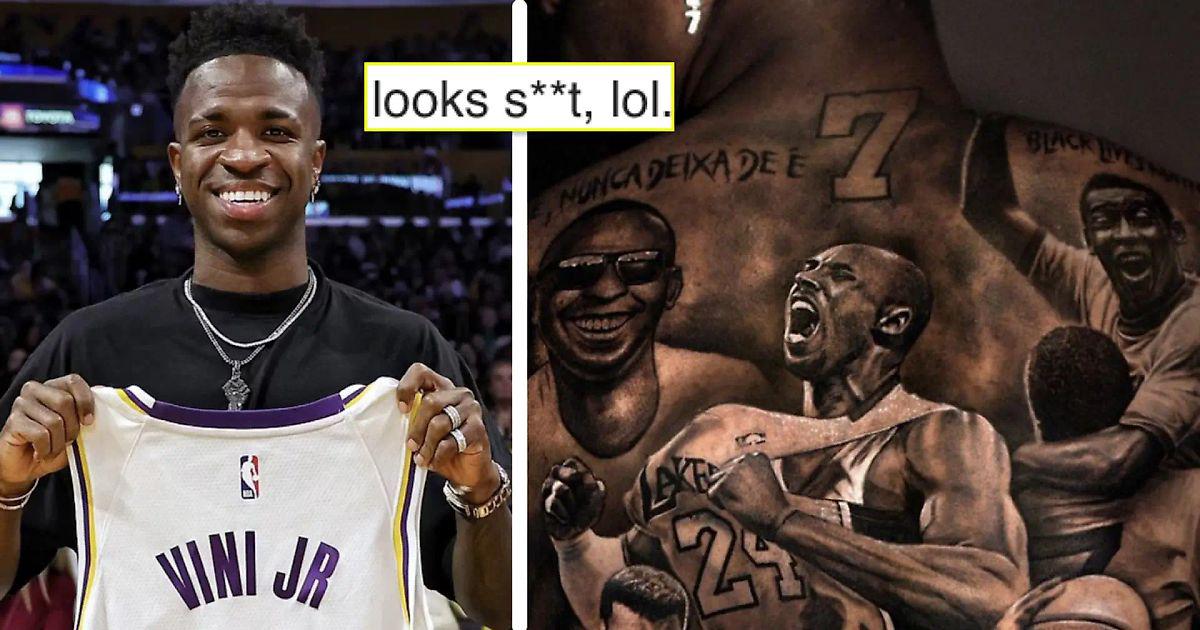 Винисиус Жуниор показал новую татуировку: теперь вся его спина покрыта знаменитыми темнокожими спортсменами, среди которых Пеле, Мухаммед Али, Майкл Джордан и Коби Брайант. Надпись вверху гласит: «Жизни чернокожих имеют значение», а внизу – «Менталость».