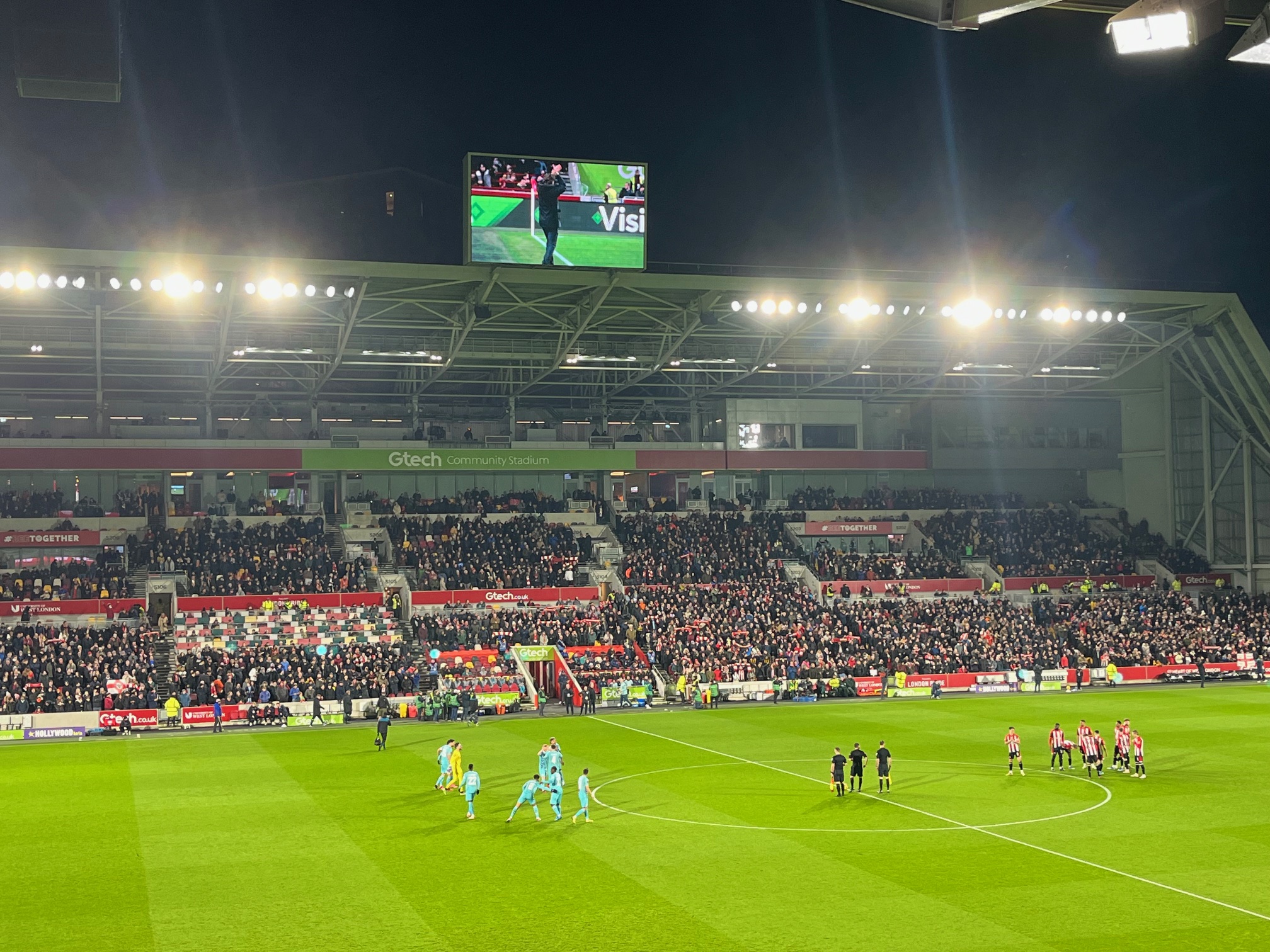 В третьем раунде нынешнего разыграша все семь лондонских клубов АПЛ играли дома, так что выбор был велик (исключение – встреча «Арсенала» и «Ливерпуля», даже наличие членства «канониров» не помогло мне найти билет). В итоге я решил пойти на другую игру двух команды АПЛ, «Брентфорда» и «Вулфс», до этого мне не приходилось бывать на стадионе «пчел». Неделю назад «Пчелы» дома без шансов уступили «Волкам» 1:4, и явно жаждали реванша.