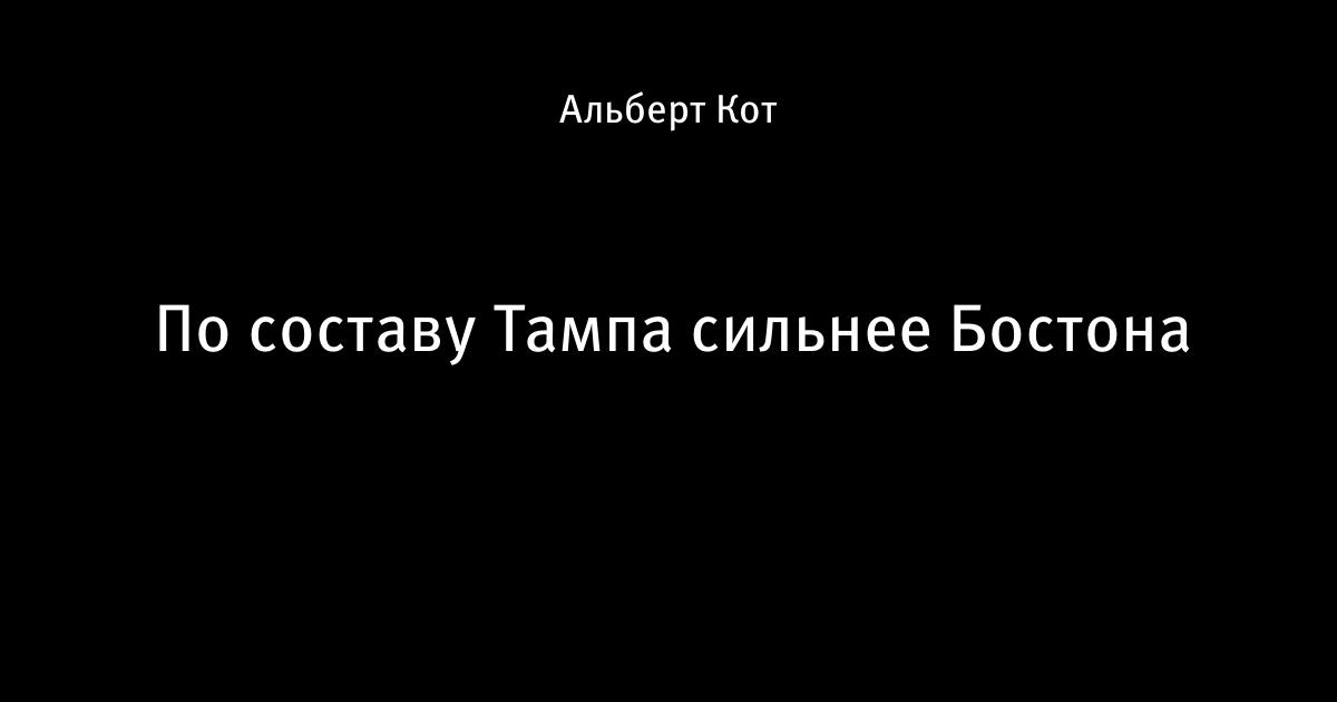По составу Тампа сильнее Бостона . Атака просто лучшая или одна из лучших в нхл . В обороне есть проблема с 4-м защитником .Сергачеву надо играть за себя и за того парня , но за это ему и платят , ситуация схожая с Нёрсом в Эдмонтоне , Нёрс справляется , Сергачёв тоже справится . Если не будет эпидемии травм , то ни каких проблем с попаданием в по не будет.