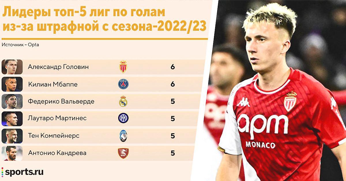В России давно (может, никогда?) не появлялся футболист, который был лучшим среди лучших, а не только лучшим среди наших. И тут новость: Головин – лидер топ-лиг по голам из-за штрафной с сезона-2022/23. Да-да, лидер среди всех игроков топ-лиг. Красота.