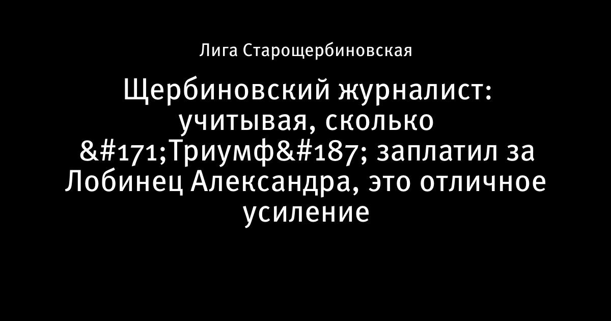 Щербиновский журналист: учитывая, сколько «Триумф» заплатил за Лобинец Александра, это отличное усиление