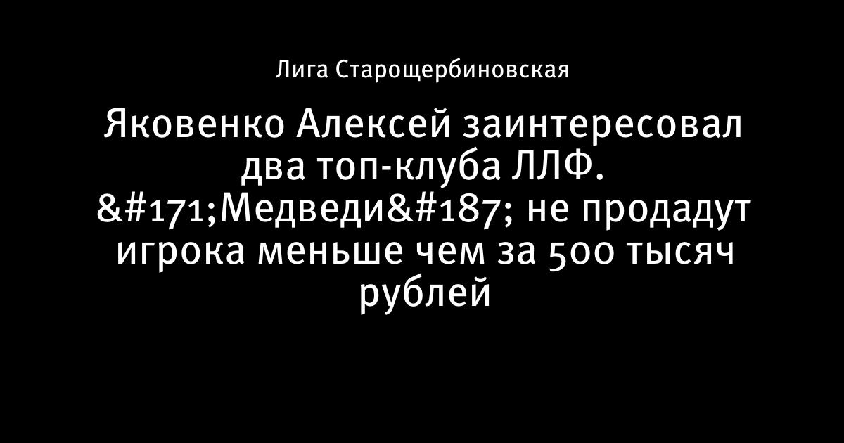 Яковенко Алексей заинтересовал два топ-клуба ЛЛФ. «Медведи» не продадут игрока меньше чем за 500 тысяч рублей