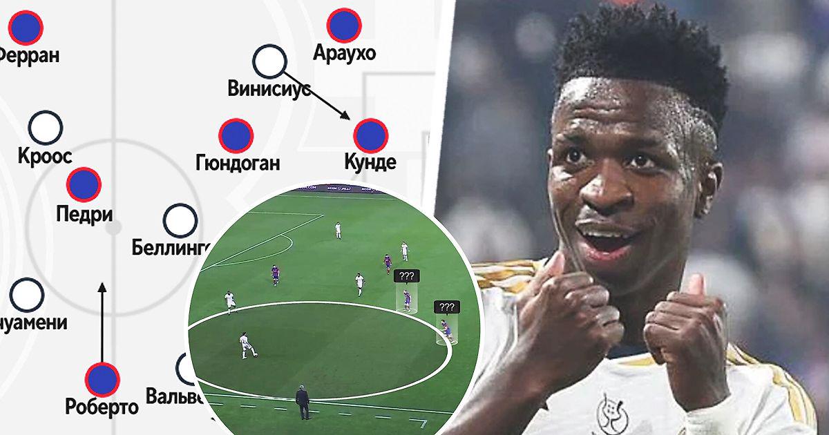 Араухо оказался почти бесполезен в сценарии, где Винисиуса нужно не встречать и сдерживать 1-в-1, а передавать и обороняться против его рывков. Более вариативная роль Винисиуса в этом сезоне не новость. Хави почему-то решил сдерживать Винисиуса из прошлого.
