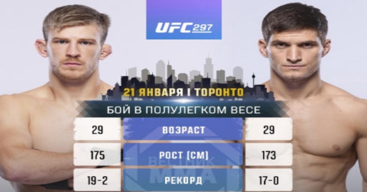 21 января в Торонто (Канада) состоится турнир UFC 297, в главном карде которого пройдет противостояние в полулегком весе между Мовсаром Евлоевым и Арнольдом Алленом.