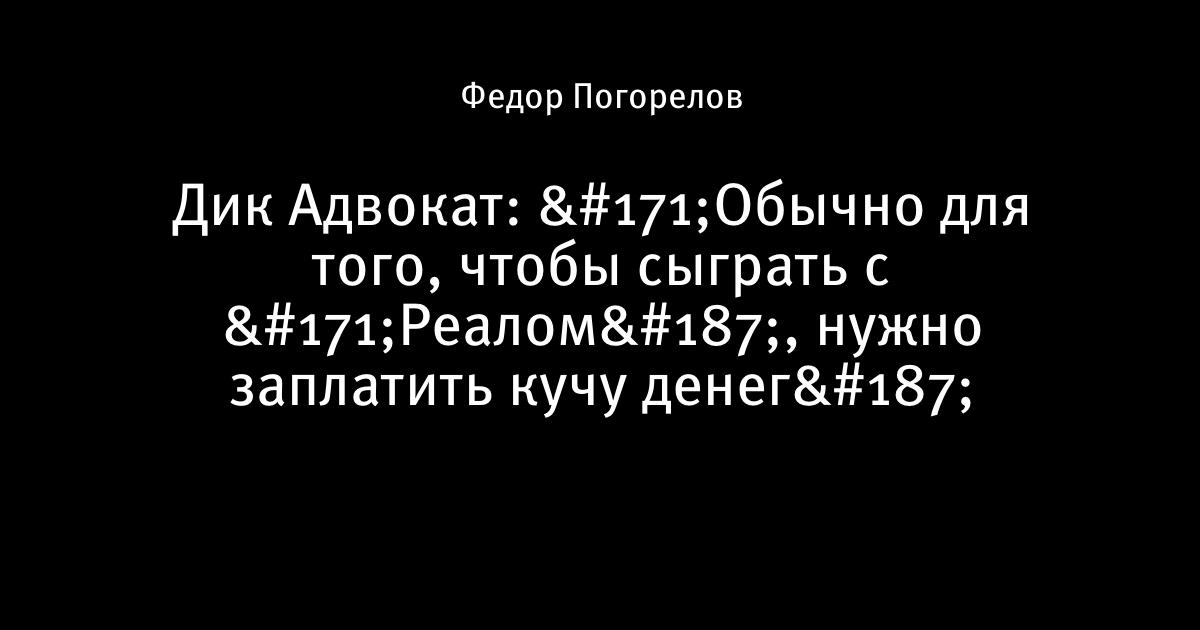Дик Адвокат: «Обычно для того, чтобы сыграть с «Реалом», нужно заплатить кучу денег»