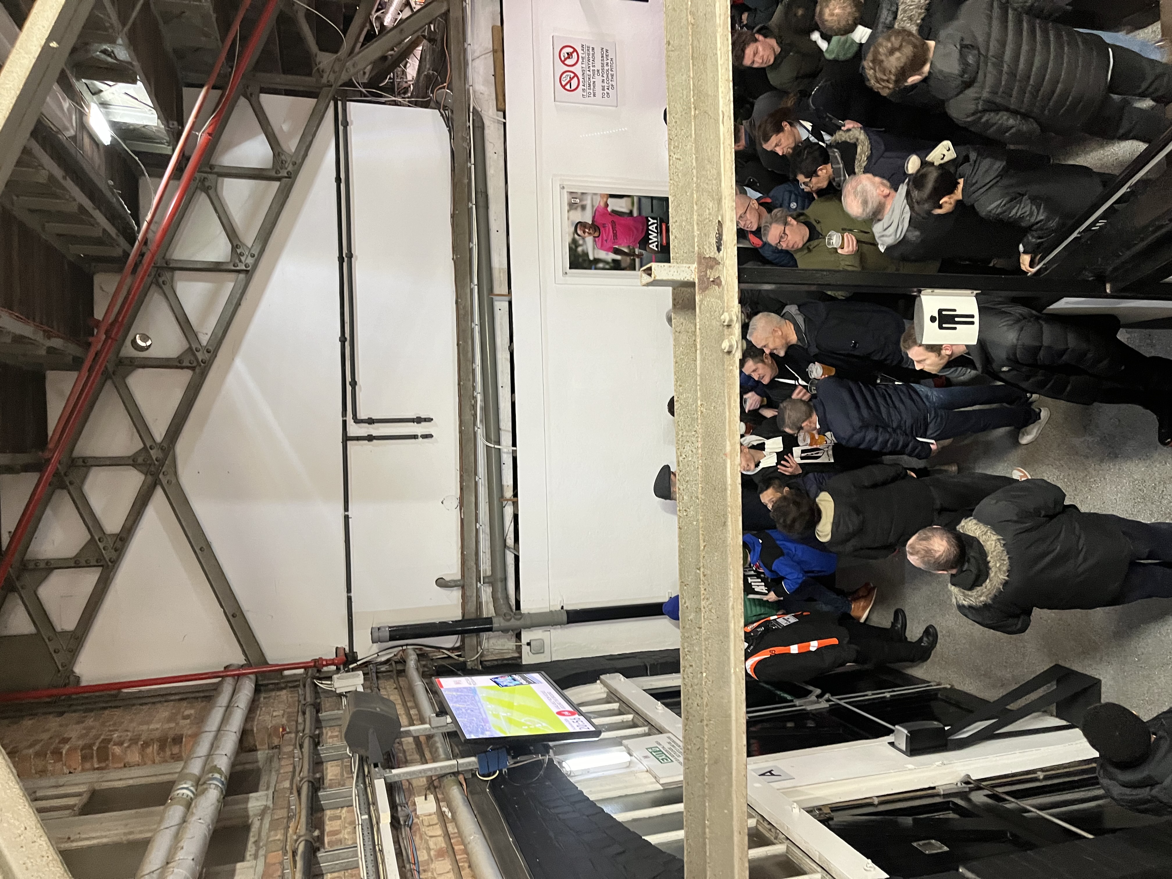Толкотня начинается уже у входа на стадион: улица разделяющая «Крейвен Коттедж» и жилой квартал, недостаточна широка и переполнена фанатами, через которых пытаются протиснуться несчастные прохожие. В итоге у нас с сыном заняло десять минут только, чтобы только пропихнуться к нашему входу на стадион, а затем мы зависли к гейту, которая почти не двигалась - турникеты похоже здесь тоже не обновлялись с 19-го века.