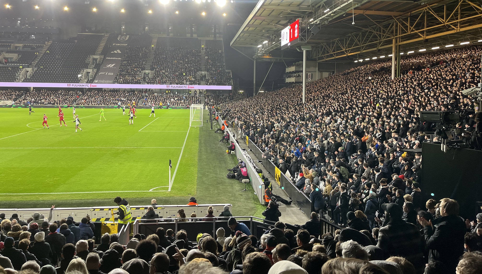 Но во втором тайме пошла другая игра - подгоняемый трибунами «Фулхэм» шел вперед и чудом не забил в середине тайма - штанга после удара в пустые ворота. На 77-й минуте хозяева все-таки сравняли, и трибуны заревели.
