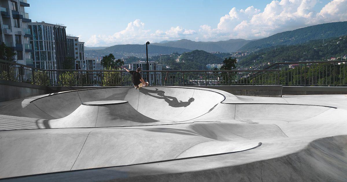 Комфортное соседство с инфраструктурой ЖК, визуальная эстетика всего комплекса, бесконечный поток для ценителей бетонного серфинга с видом на горы Красной Поляны — все в одном объекте.