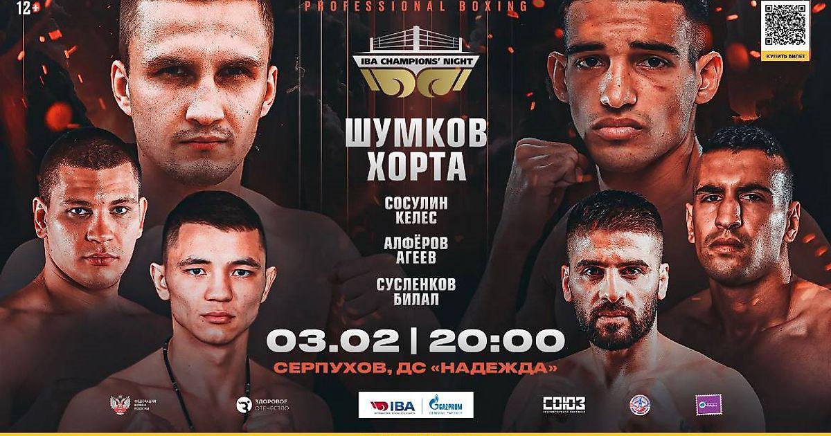 Трёхкратный чемпион России и бронзовый призёр чемпионата мира-2023 Всеволод Шумковв в главном поединке шоу поспорит за звание претендента на профессиональный пояс IBA в весе до 57 кг с финалистом чемпионата мира в Ташкенте кубинцем Сайдель Хорта. Их бой рассчитан на 10 раундов.