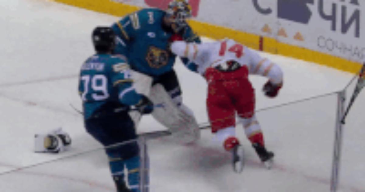 Вратарь отметелил полевого игрока! Такого вы в КХЛ еще не видели