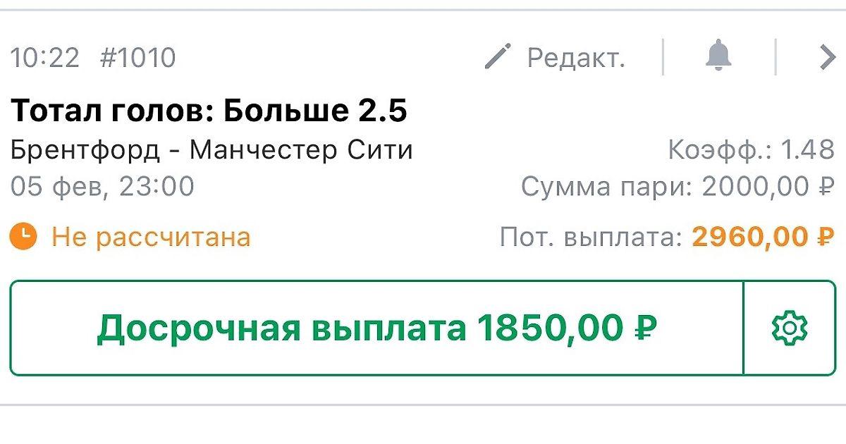Сегодня 1 матч в АПЛ и его тоже беру на ТБ 2,5!