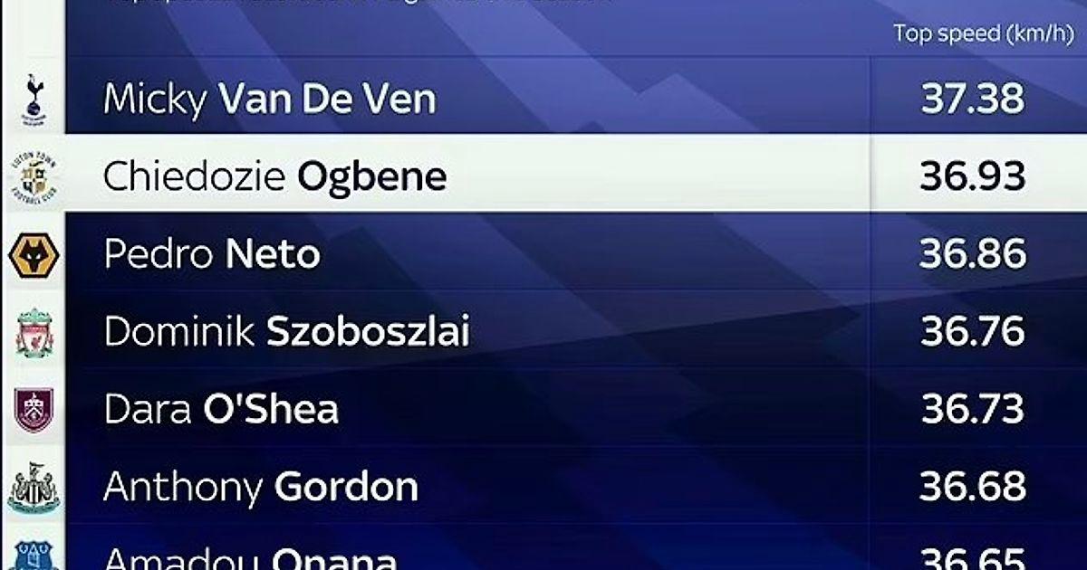 Помимо него в тройке быстрейших игроков этого сезона Чидози Огбене из Лутон Тауна ( 36,93 км/ч) и Педру Нету из Вулверхэмптона ( 36,86 км/ч).
