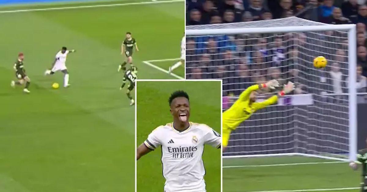 Один из игроков «Мадрида» отвлек защитников, которые среагировали на его забег, а Винисиус решился на дальний удар в дальний угол.