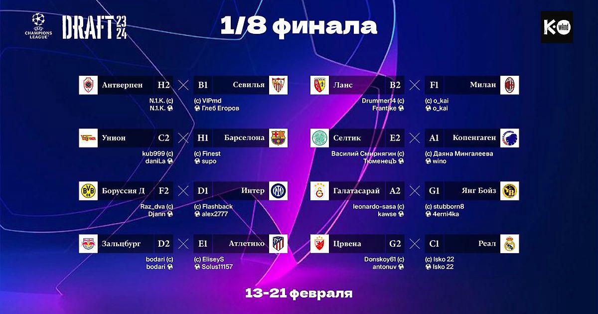 Лига Чемпионов 2023/24. Плей-офф 1/8