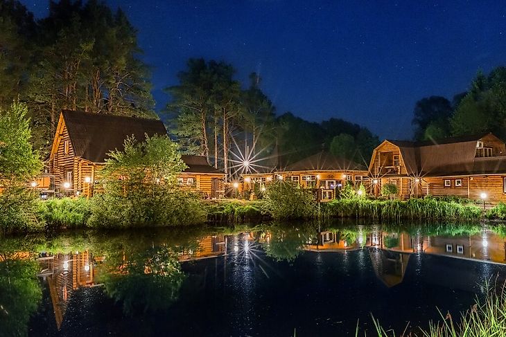 Гости могут остановиться на ночь в уютных деревянных коттеджах. Администрация центра позаботилась о досуге отдыхающих. Из активностей и развлечений можно выделить пейнтбол, боулинг, лазертаг, прокат лодок. На территории центра есть конноспортивный клуб, кафе с караоке-залом. Малыши могут отправиться в детский клуб.