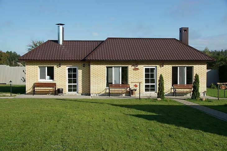 Для проживания построен большой дом, в котором могут разместиться до 50 гостей. На территории базы отдыха есть баня, оборудованная кухня, санузел, помещение для проведения банкета с караоке и настоящая русская печь. Рядом с большим домом находится мангал, качели, площадка для детей и спортивная площадка. Для отдыха на свежем воздухе можно переместиться в беседку. Их несколько.