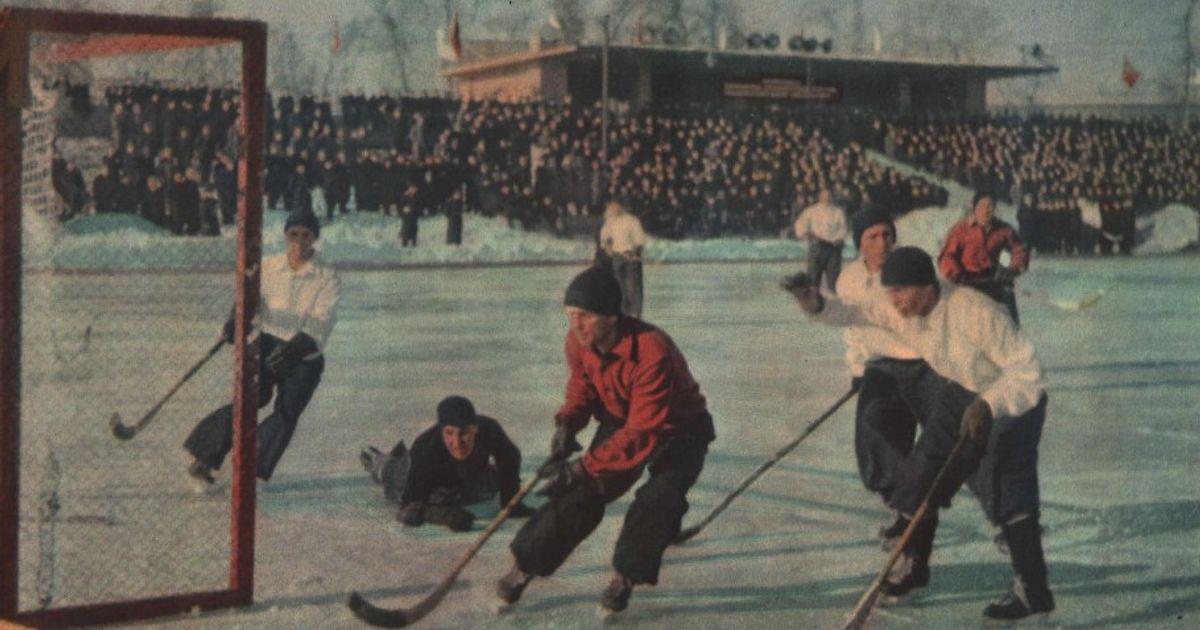 17 февраля 1946 года. Москва. Малый стадион «Динамо». 10 000 зрителей. Кубок СССР. Полуфинал. ЦДКА - «Динамо» (Москва) - 3:1 (0:1). Динамовцы в обороне (internationalhockeywiki.com)