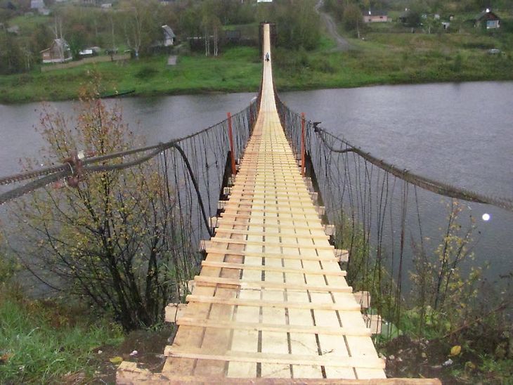 Следующей достопримечательностью никого не удивишь. Так, подобные сооружения есть в других городах и поселках. Однако он примечателен тем, что является самым старым и длинным в данных окрестностях. Однако мост признан опасным для использования по прямому значению. В свое время он соединял рабочие поселки, а теперь там нравится отдыхать дачникам.