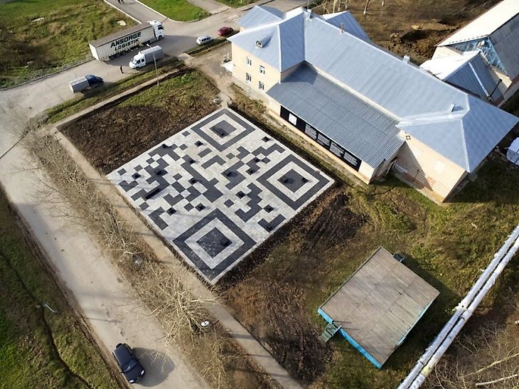 Дизайнер Александра Бубнова зашифровала адрес городского сайта в OR-коде. Так появился необычный современный объект. Дизайнер выбрала материал для своего творчества – плитку. На площади сделали общественный доступ к интернету через Wi-Fi.