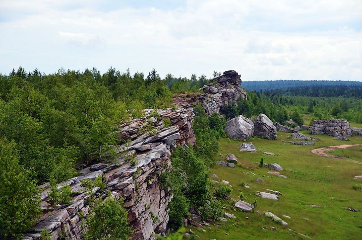 Геологический разрез тянется на 12 километров по левому берегу реки Косьва. Редкие растения произрастают в этом ландшафтном памятнике природы.