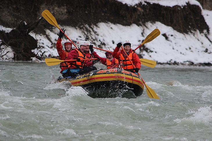Река Белая не замерзает в зимнее время. Сплавы по реке доступны круглый год. Организаторы рафтинга обеспечивают всех туристов специальными зимними гидрокостюмами, которые надежно защищают от холода даже в ледяной воде.