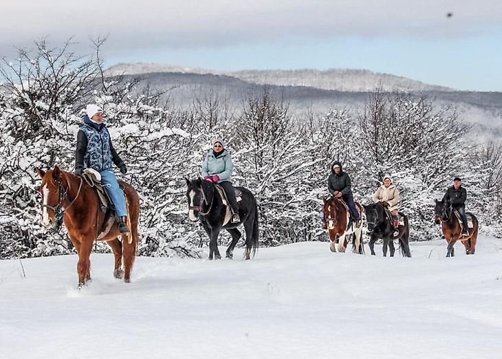 Хорошей альтернативой пешим прогулкам станут конные переходы по заснеженному лесу и ущельям. На лошадях можно отправиться к замечательным смотровым площадкам. Воспользоваться конными прогулками могут и маленькие дети.