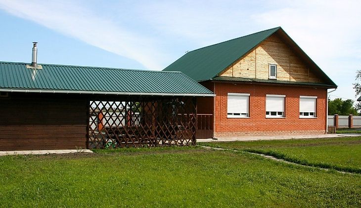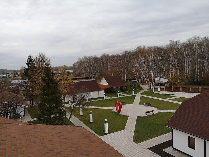 Эко-деревня находится на просторной, хорошо оборудованной территории в экологически чистом районе в селе Красноярка на берегу Иртыша. Проживание возможно в семейных домиках, где может разместиться супружеская пара с одним ребенком, в доме для компании, рассчитанном на шесть человек, в домиках для двоих или домике на склоне. В каждом из домов есть санузел, душ, посуда и вся необходимая бытовая техника. Из домика на склоне к тому же открывается живописный вид на луга и сосновый бор. На территории гуляют ручные козочки, которых можно кормить.