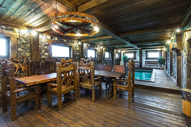 Территория довольно компактная и самое основное развлечение это русская баня и финская сауна. В сауне мягкая температура, душевая, теплые полы и натуральные материалы в отделке. В распоряжении гостей вся необходимая бытовая техника от чайника до музыкального саундбара. После посещения парной в русской бане зимой можно натереться снегом или нырнуть в сугроб. Летом посидеть в беседке. Хозяева предлагают на выбор березовые, пихтовые или дубовые банные веники. В зоне отдыха «Уютный двор» можно провести день или поселиться на выходные.