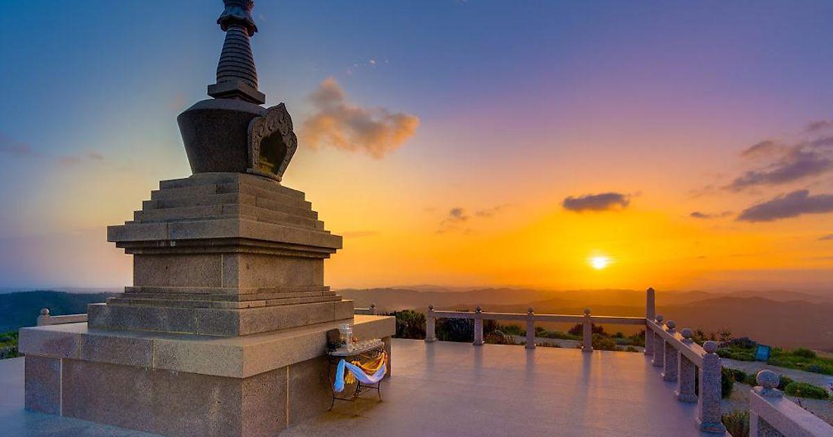 Другим известным подъемом гонки является Альту-ду-Мальян (2,5 километра со средним градиентом в 9,8%). Он противоположен Фойе – это короткое, но очень крутое восхождение со стенками, в моменте достигающими безумных 24%. На его вершине расположена буддийская Ступа Просветления, являющаяся символом потенциала, который есть у каждого человека и позволяет раскрыть все способности ума и освободиться от страстей. Ее построили пятнадцать лет назад, и она стала первым буддийским памятником на территории Португалии. Мастера, выбравшие это место, посчитали, что самая высокая точка горы является идеальным местом для концентрации положительных энергий.