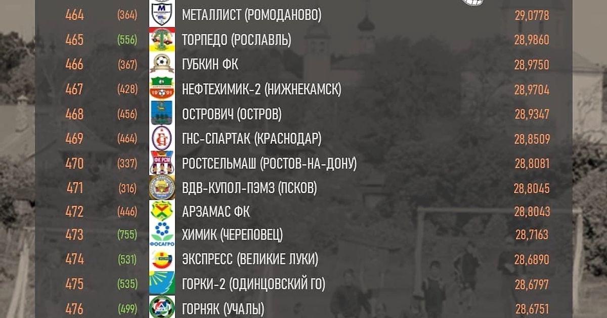 465 (556) ТОРПЕДО (РОСЛАВЛЬ) 28,9860