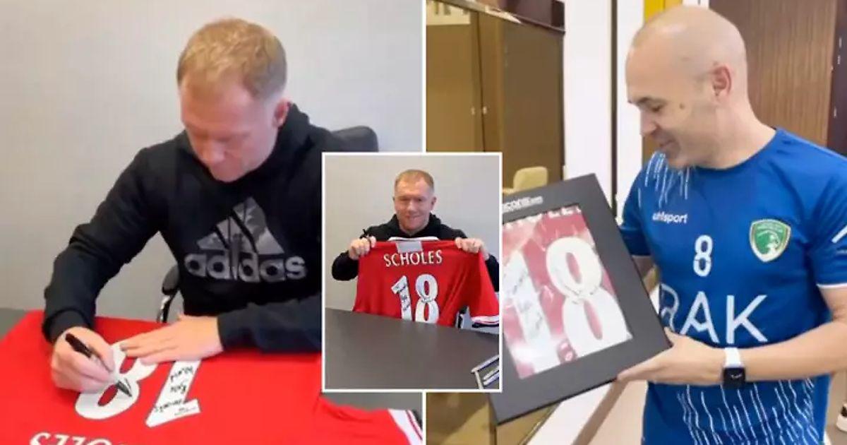 Прошло более десяти лет, а Иньеста до сих пор большой поклонник Пола Скоулза. Недавно он получил от него футболку с персональным посланием.