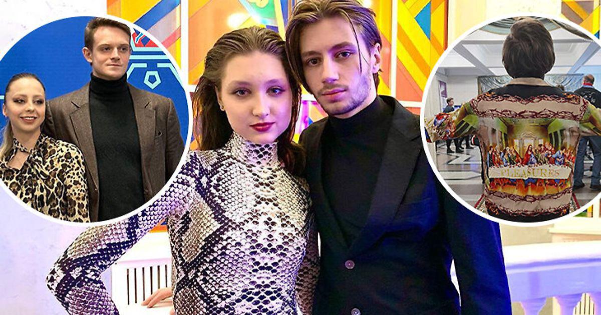 Наряды фигуристов на жеребьевке Спартакиады: тату на груди, принты с леопардом, змеей и даже Иисусом