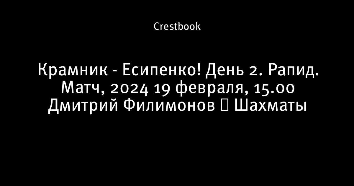 Крамник - Есипенко! 🏆 День 2. Рапид. Матч, 2024 ⏰ 19 февраля, 15.00 🎤 Дмитрий Филимонов ♕ Шахматы