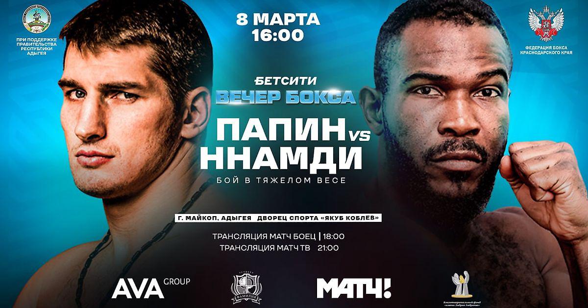 В своём последнем бою Папин в октябре 2023 года единогласным решением судей уступил соотечественнику Сослану Асаброву. Сейчас бывший первый номер рейтинга WBC и экс-обладатель пояса IBF International Папин намерен как можно быстрее вернуться на победную тропу - в противостоянии с Ннамди россиянину представится отличный шанс для этого.