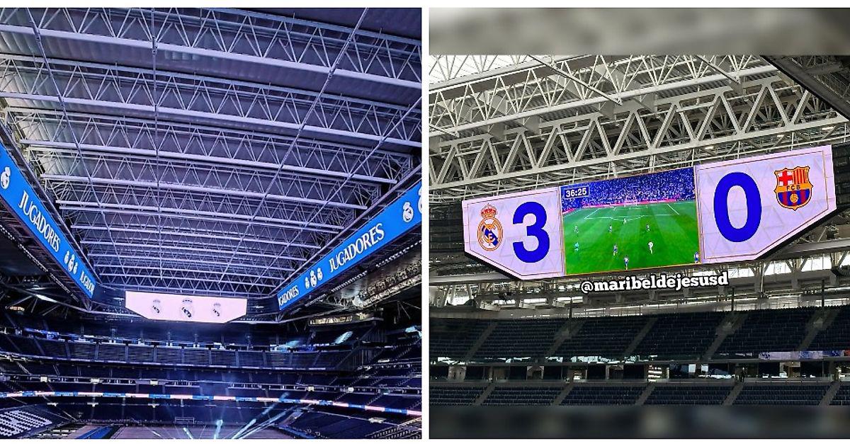 Реконструкция «Сантьяго Бернабеу» близится к завершению. Журналистка Марибель Де Хесус поделилась кадрами новенького 360-градусного табло.